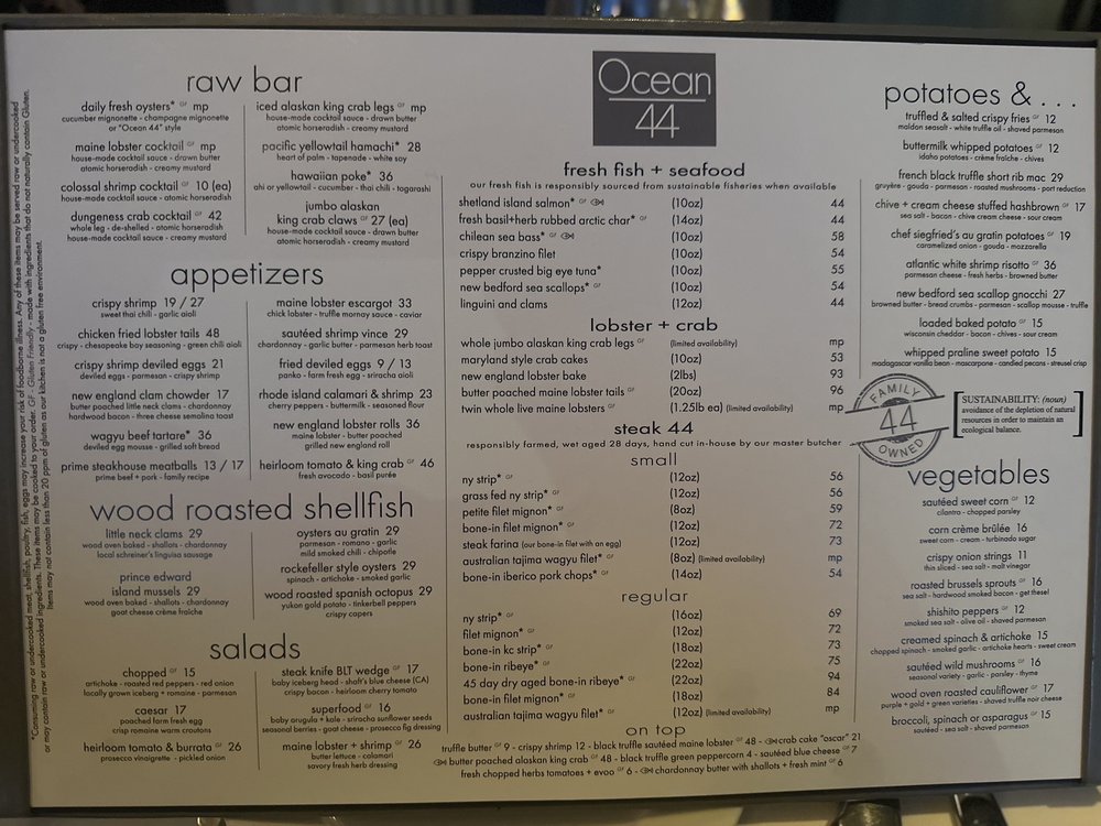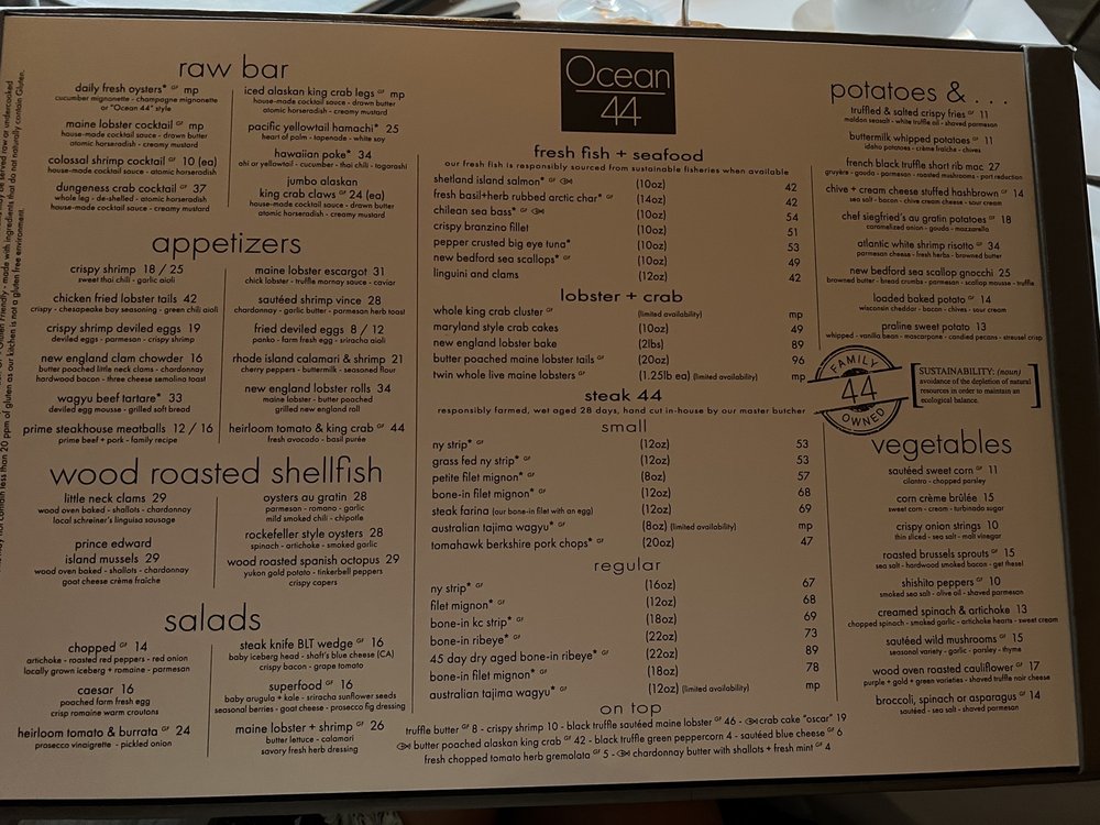 Ocean 44 Menu